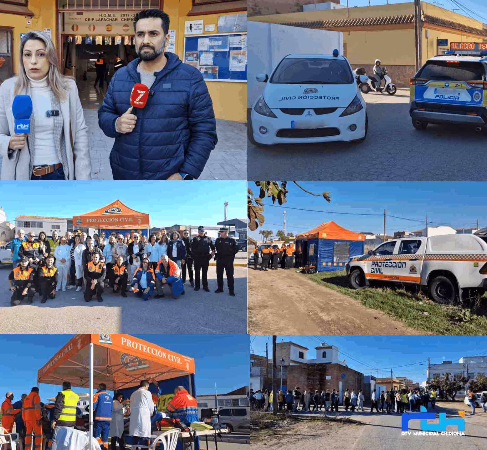 Tras la alarma recibida se han iniciado los protocolos establecidos para estos casos y se ha procedido a la evacuación del Colegio Lapachar y de los dos centros de salud de la localidad con la puesta en práctica del Plan de Actuación Local ante el Riesgo de Maremotos de Chipiona, con el objetivo de reforzar el conocimiento de las pautas de actuación entre alumnado, profesorado y personal del centro. En este caso, el Centro de Salud Tolosa Latour se ha dirigido hasta el punto de encuentro establecido en la antigua estación de tren, situada en la avenida de la Estación, donde además el personal del centro ha realizado un simulacro de atención a heridos. Por su parte, el centro educativo Lapachar, con un total de 470 alumnos y alumnas evacuados y el centro de salud El Arroyo, se han dirigido al punto de encuentro situado en las parcelas municipales de la Vía Láctea. El simulacro se ha dado por finalizado poco antes de las 13:00 horas.