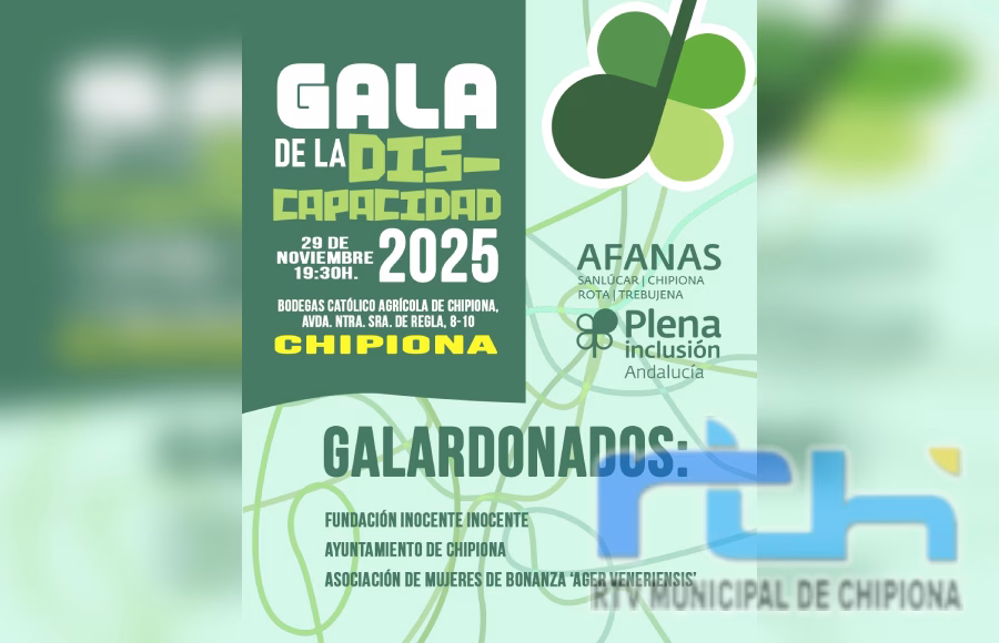 En torno al 3 de diciembre, cuando se conmemora el Día Internacional de la Discapacidad, la entidad está desarrollando un programa de actividades, que incluye esta gala, que se ha decidido que se celebre en Chipiona por la cesión de instalaciones en La Laguna que ha realizado recientemente el ayuntamiento de la localidad. Además, se contará con actuaciones musicales para amenizar el acto.