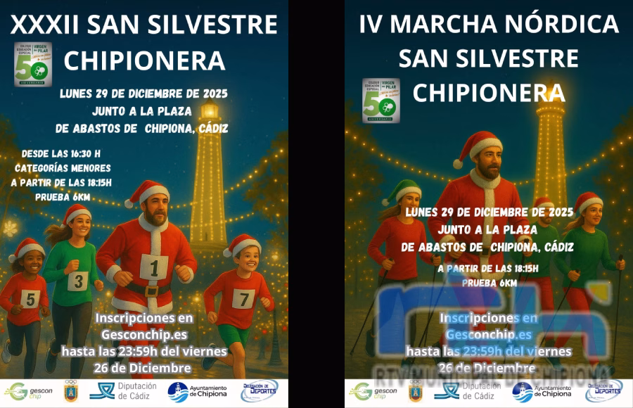 Las pruebas están organizadas por el Club Atletismo Chipiona y la Delegación de Deportes con el apoyo de Diputación Provincial de Cádiz. La carrera popular San Silvestre es una de las más antiguas de la provincia y llega este año a su trigésimo segunda edición, mientras la marcha nórdica se disputa por cuarto año. La salida y la meta estarán ubicadas en la calle Miguel de Cervantes, junto a la Plaza de Abastos.