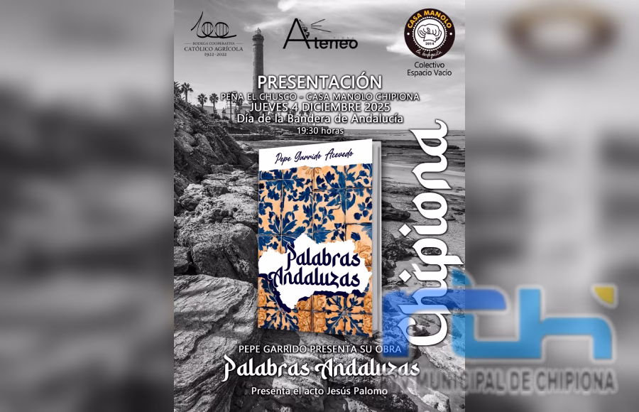 Con motivo de esta efeméride, Nuevo Ateneo de Chipiona ha organizado para hoy una presentación literaria, en concreto de la obra ‘Palabras Andaluzas’, de Pepe Garrido. El acto tendrá lugar en la sala del Colectivo Cultural Espacio Vacío, ubicada en Casa Manolo-Peña El Chusco, a las 19:30 h. y estará presentado por Jesús Palomo. Este es el primer libro del grazalemeño Pepe Garrido, y se trata, según el autor, de una especie de diccionario andaluz compuesto por 1.441 términos exclusivos de la región, pero es mucho más que eso, es un interesante viaje por la riqueza lingüística, la gracia y la identidad del habla andaluza.