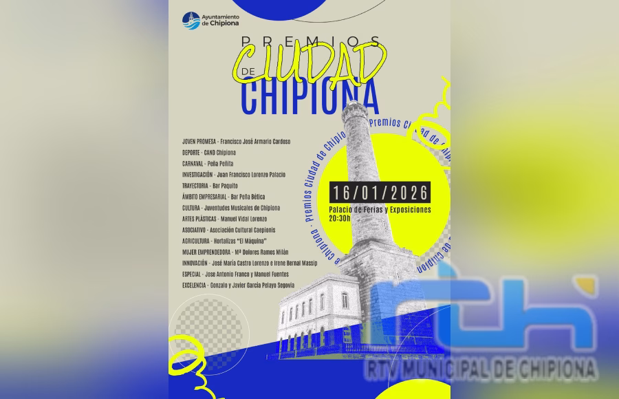 Así mismo, habrá un reconocimiento especial a José Antonio Franco y Manuel Fuentes, personas que durante toda su vida se dedicaron a la comunicación audiovisual a nivel local, pioneros en la instalación de la televisión por cable. Y, por último, se entregará un reconocimiento a la excelencia a Gonzalo y Javier García-Pelayo, hermanos muy vinculados a Chipiona, partícipes en el mundo musical, en la cinematografía, la radiodifusión y la televisión e, incluso, de la hostelería.