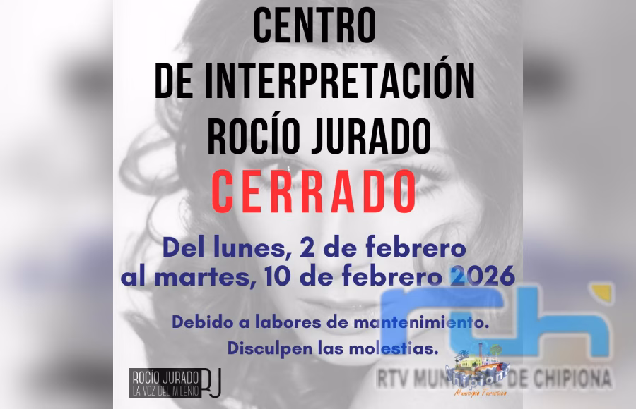 La Delegación de Turismo del Ayuntamiento de Chipiona ha informado que el Centro de Interpretación Rocío Jurado, va a permanecer cerrado hasta el martes 10 de febrero, debido a diversas tareas de mantenimiento que se ha decidido abordar en este momento.