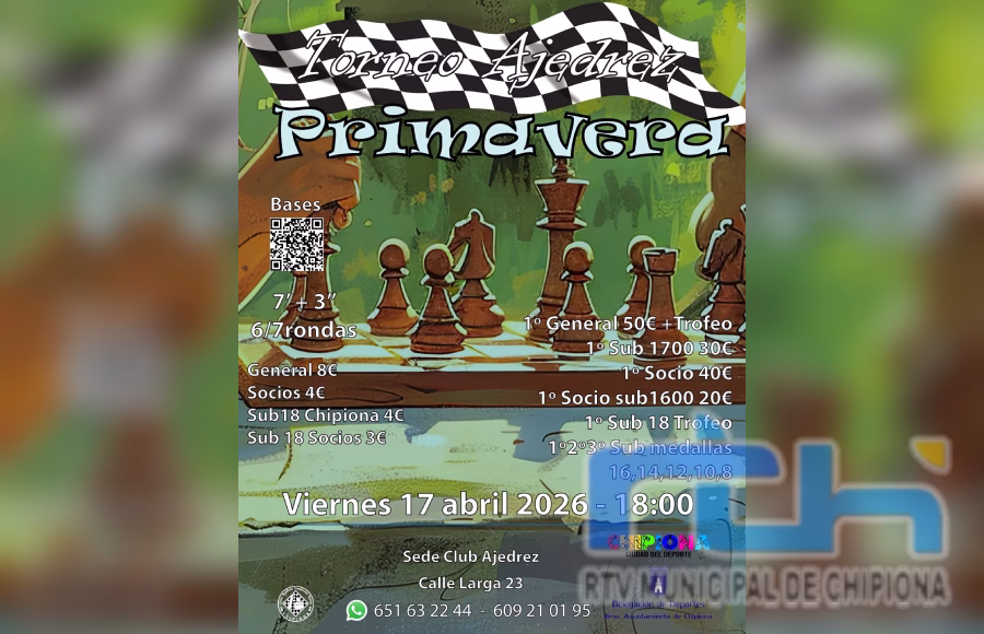 El Club de Ajedrez Chipiona Caepionis Turris ha abierto las inscripciones para un torneo de ajedrez de primavera que se celebrará el viernes 17 de abril.